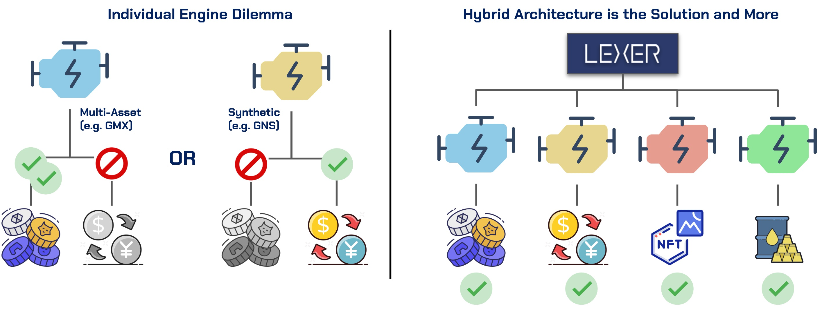 The Hybrid Liquidity Engine combines multiple liquidity models into a single trading platform. Instead of trying to make one model fit all use cases and markets, the hybrid engine makes use of the strengths from each model without the weaknesses, thus enabling more markets easily without compromises.&#x20;