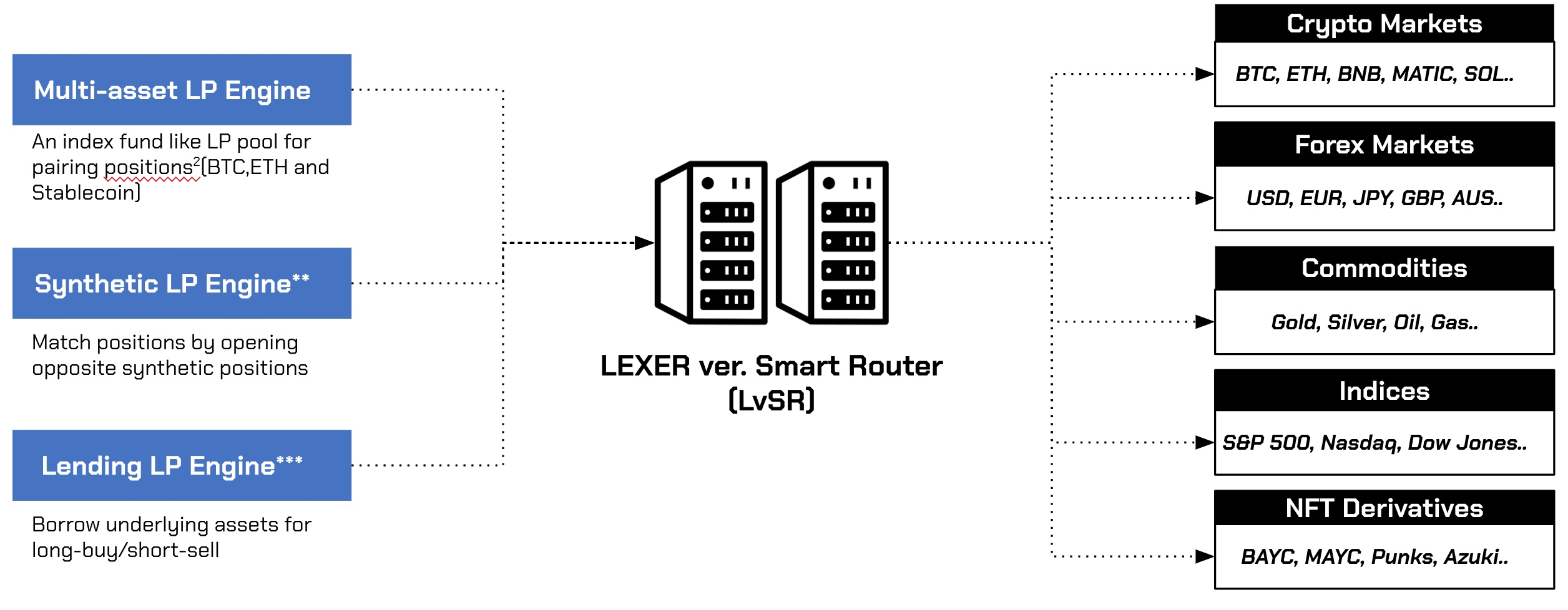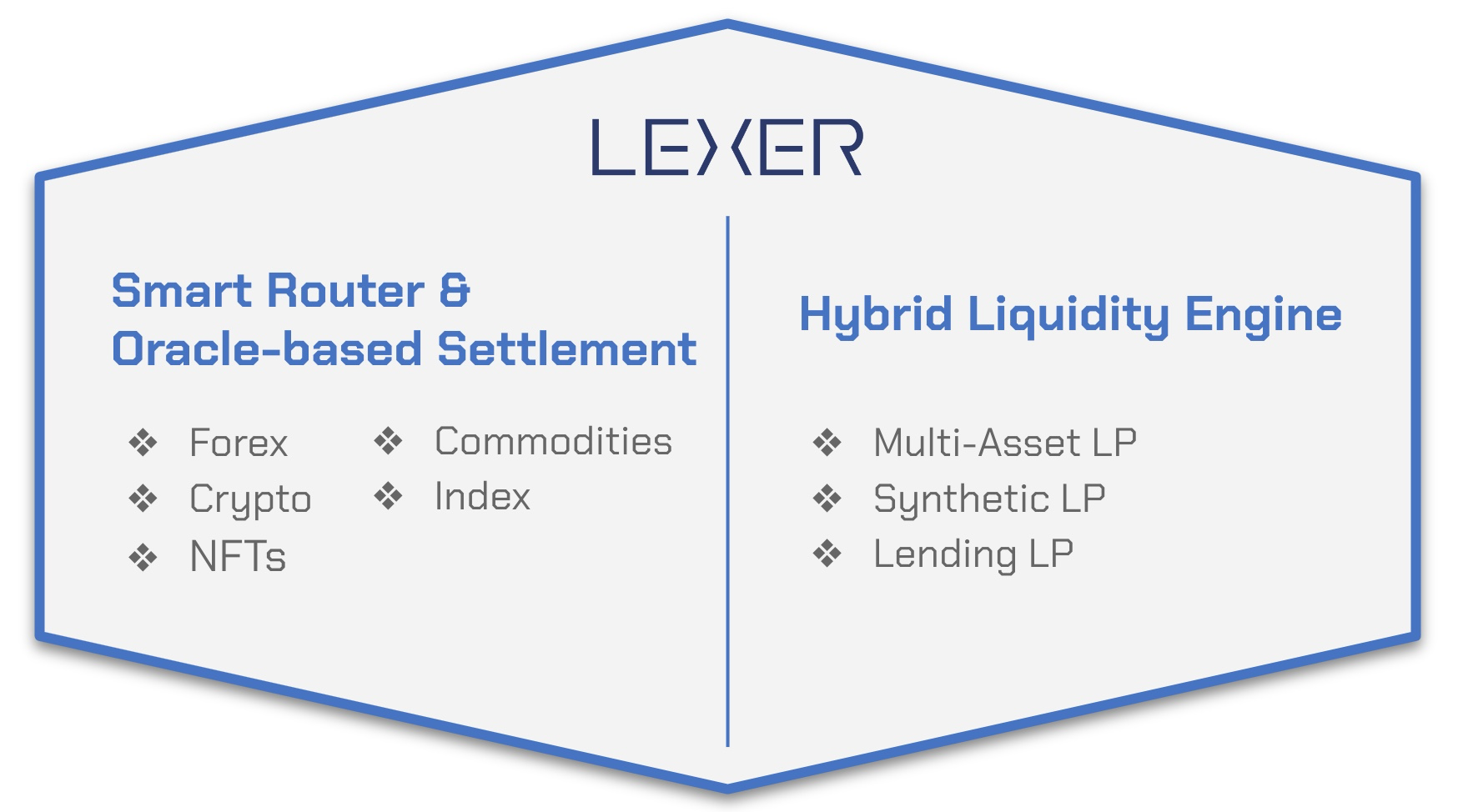 Lexer is powered by its one-of-a-kind **Hybrid Liquidity Engine** and **Smart Router** on top of an evolving group of **Oracle-based Settlement Algorithms**.&#x20;